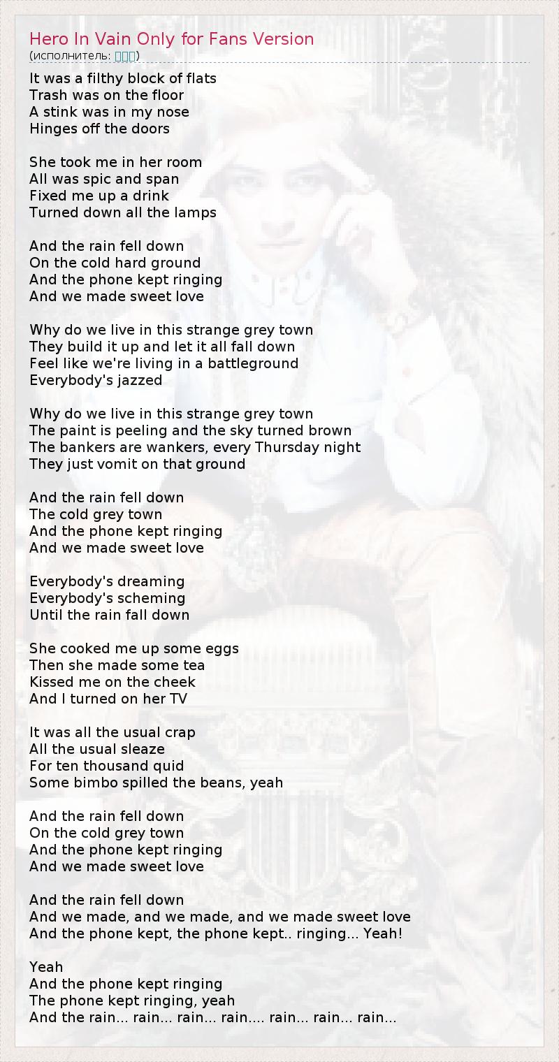 А как ты думаешь, о чем песня "Hero In Vain Only for Fans Version" ?
