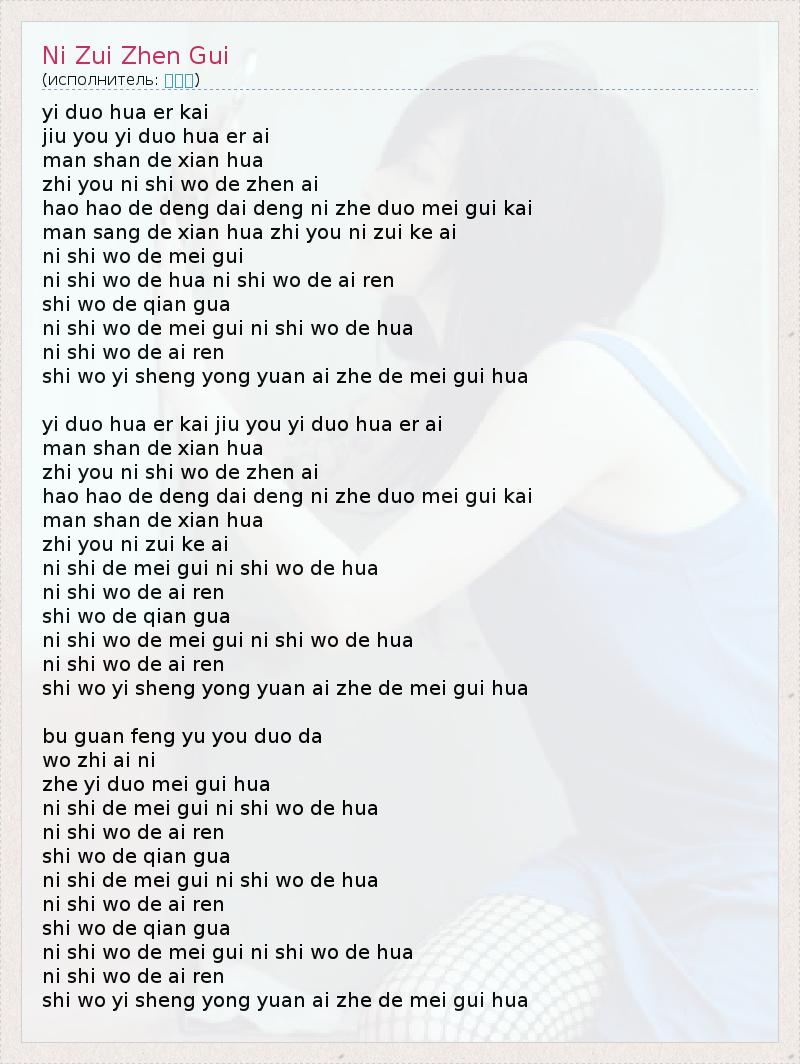 А как ты думаешь, о чем песня "Ni Zui Zhen Gui" ?