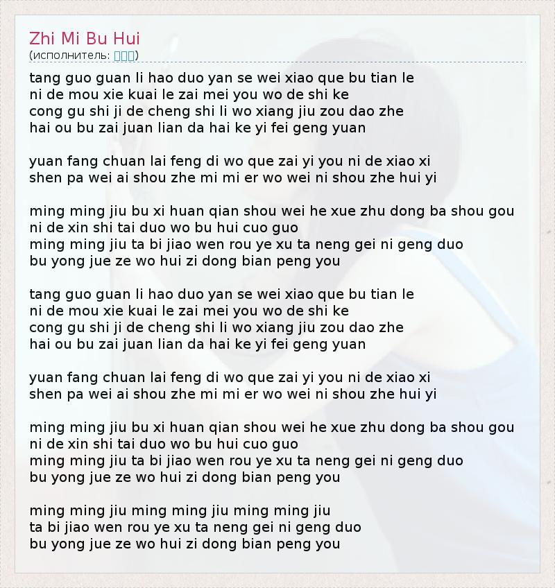 А как ты думаешь, о чем песня "Zhi Mi Bu Hui" ?