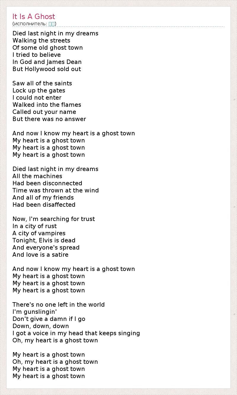 А как ты думаешь, о чем песня "It Is A Ghost" ?