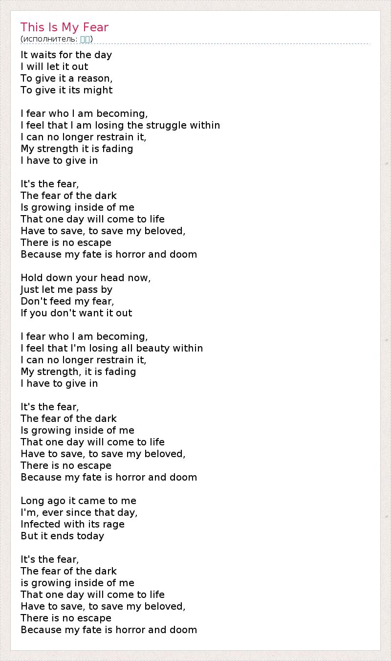 А как ты думаешь, о чем песня "This Is My Fear" ?