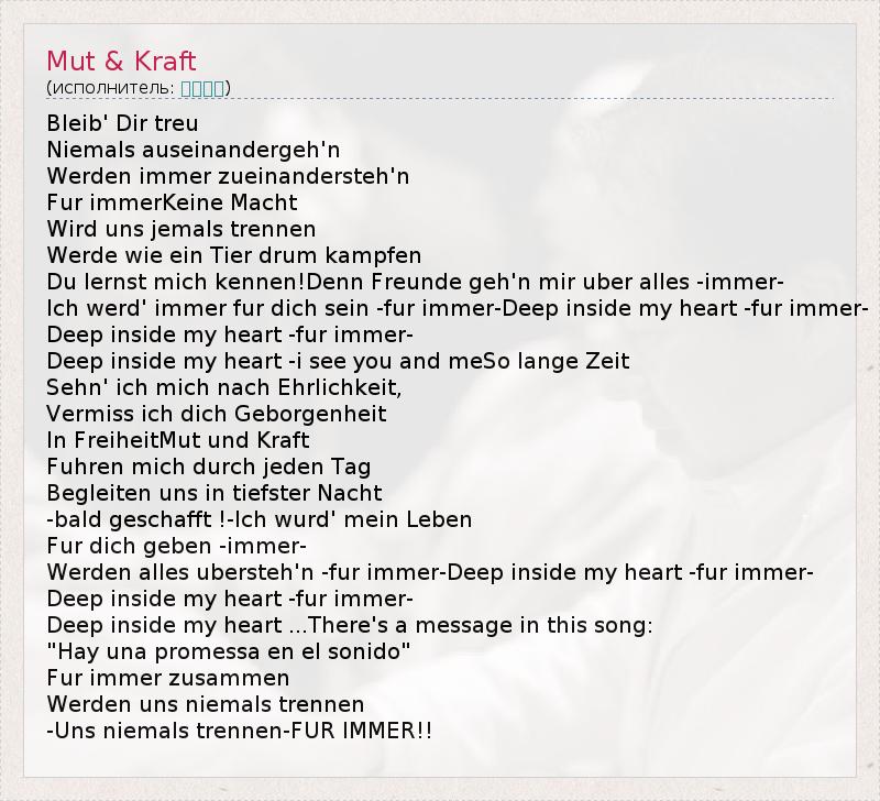 А как ты думаешь, о чем песня "Mut & Kraft" ?