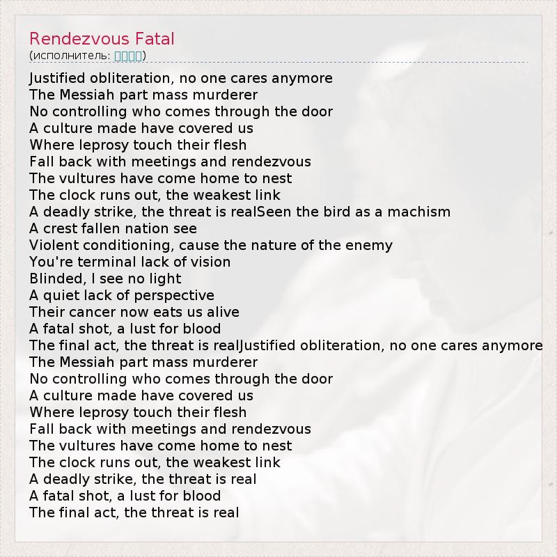 А как ты думаешь, о чем песня "Rendezvous Fatal" ?