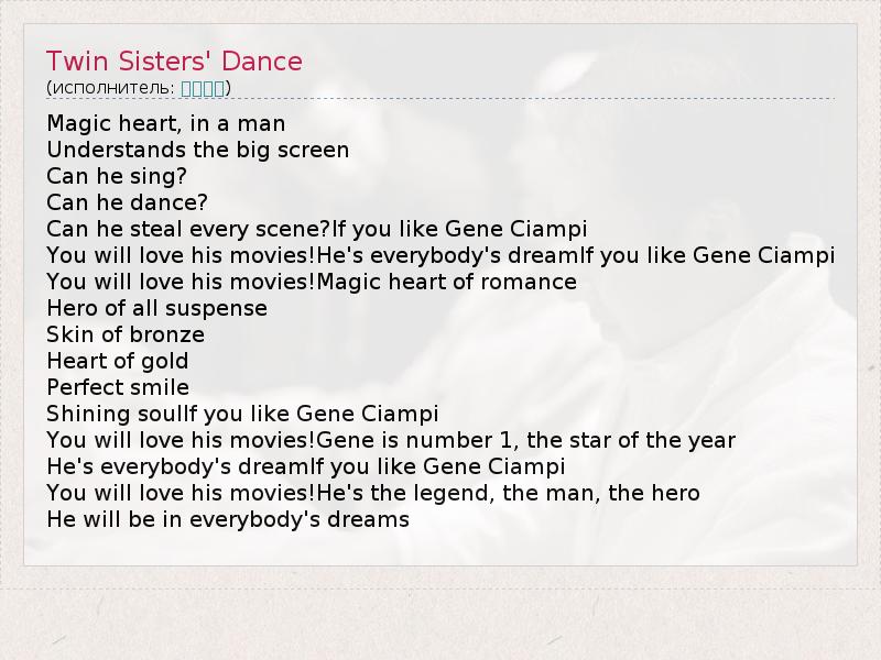А как ты думаешь, о чем песня "Twin Sisters' Dance" ?