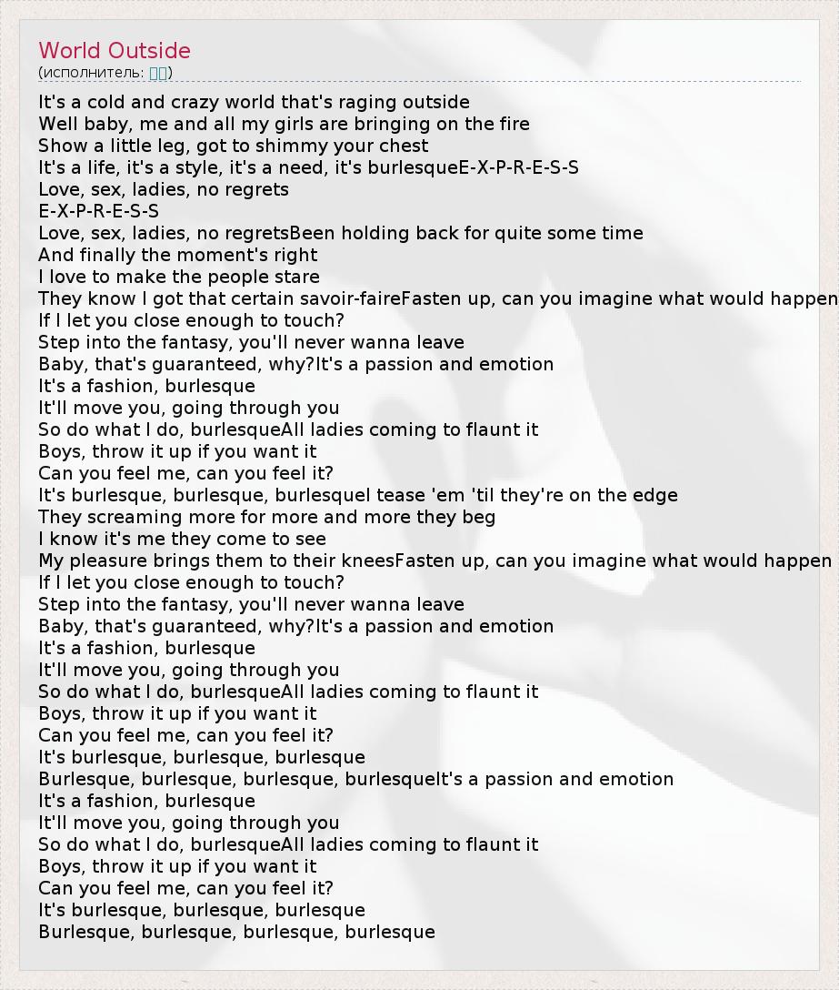 Burlesque, burlesque, burlesque, burlesqueIt's a passion and emotion