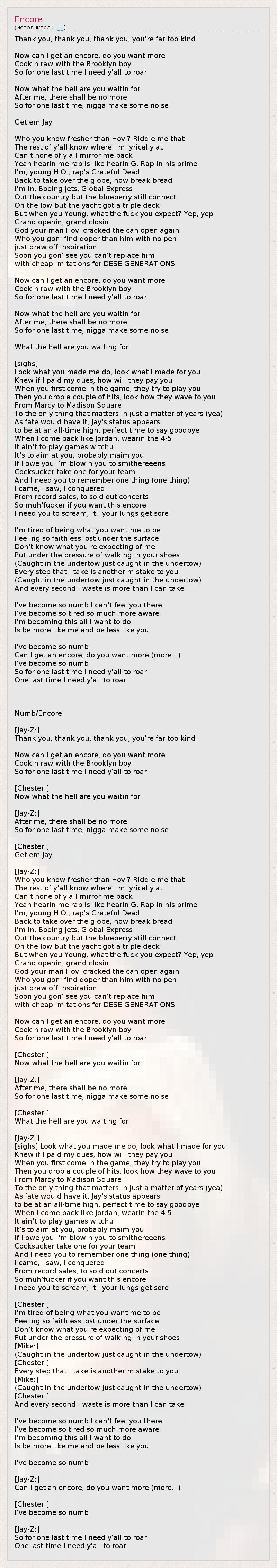А как ты думаешь, о чем песня "Encore" ?