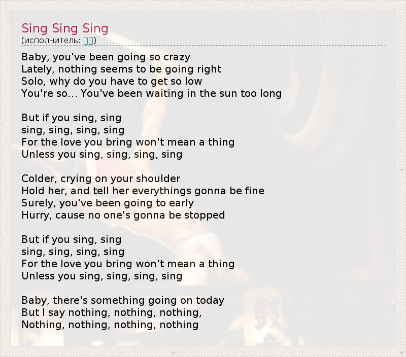 А как ты думаешь, о чем песня "Sing Sing Sing" ?