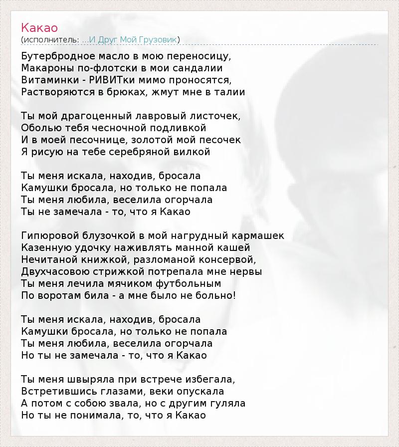 Это интересно:«…и Друг Мой Грузовик» — украинский музыкальный коллектив, отличительной особенностью которого является минималистичный состав, содержащий в себе только ритм-секцию (ударные и бас) и своеобразный вокал. Завершил свою творческую деятельность в декабре 2012.1997.В украинском городе Днепропетровск, Украина, три молодых человека создают группу «Я и ДРУГ МОЙ ГРУЗОВИК» с целью выступить... продолжение