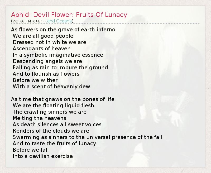 А как ты думаешь, о чем песня "Aphid: Devil Flower: Fruits Of Lunacy" ?