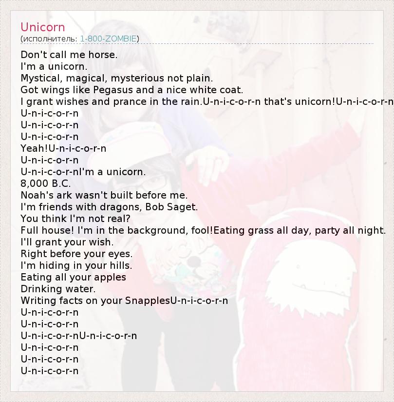I grant wishes and prance in the rain.U-n-i-c-o-r-n that's unicorn!U-n-i-c-o-r-n