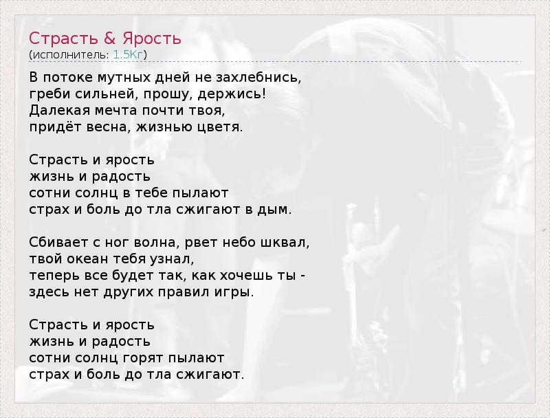 А как ты думаешь, о чем песня "Страсть & Ярость" ?