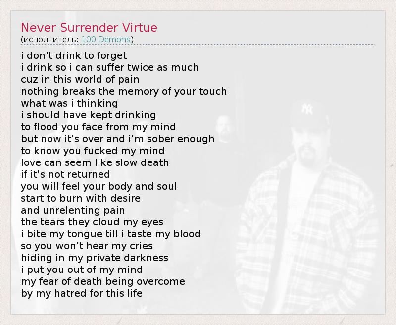 ГлавнаяИсполнители100 DemonsNever Surrender Virtue
