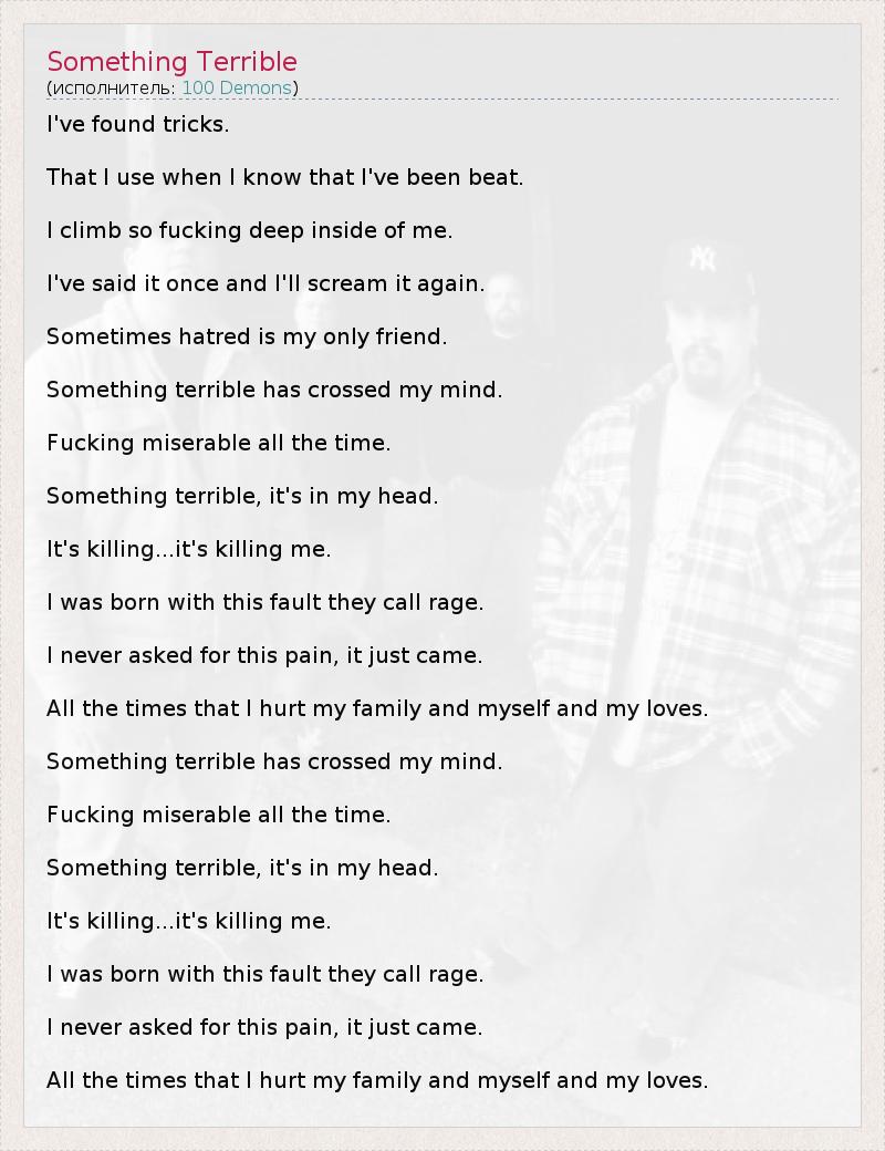 А как ты думаешь, о чем песня "Something Terrible" ?