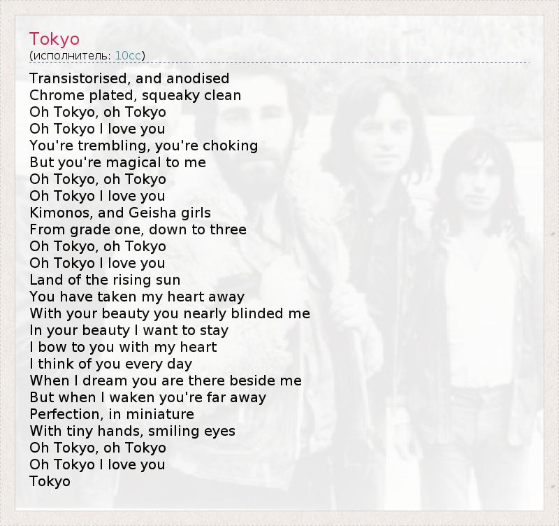 А как ты думаешь, о чем песня "Tokyo" ?