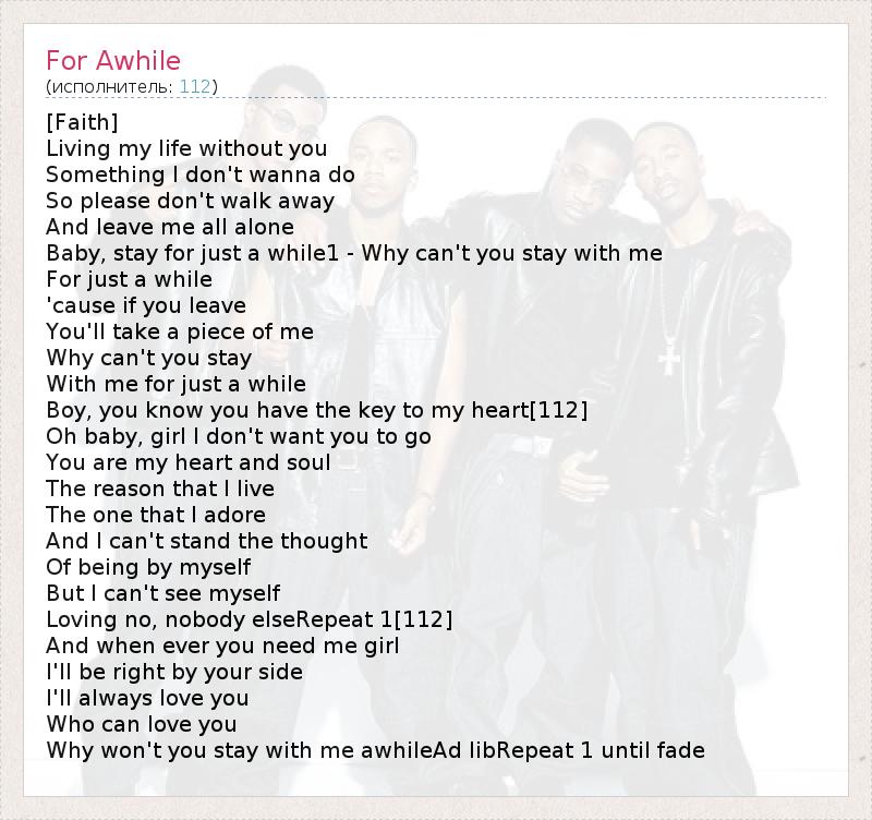 Why won't you stay with me awhileAd libRepeat 1 until fade