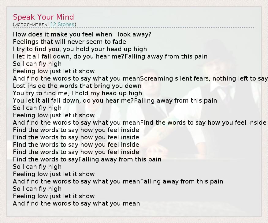 А как ты думаешь, о чем песня "Speak Your Mind" ?