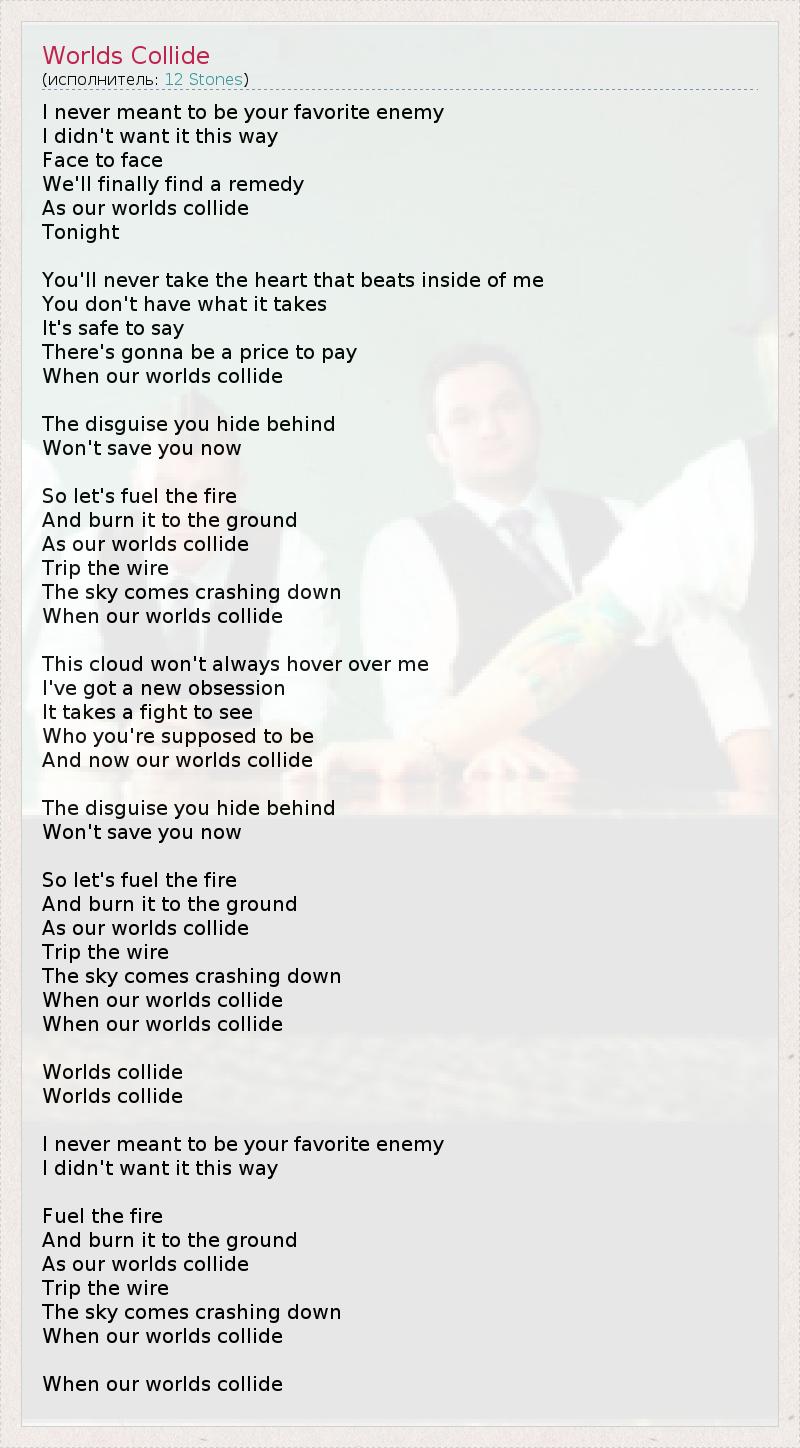 А как ты думаешь, о чем песня "Worlds Collide" ?
