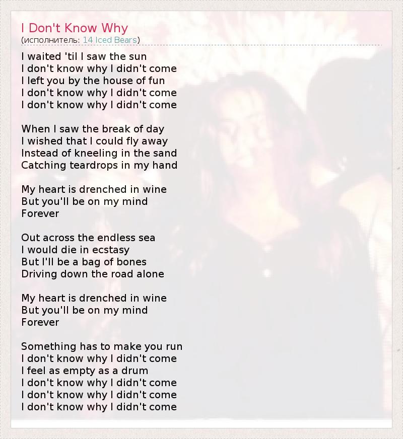 А как ты думаешь, о чем песня "I Don't Know Why" ?