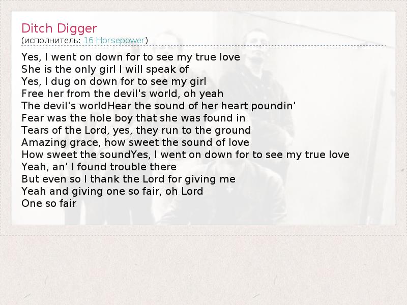 А как ты думаешь, о чем песня "Ditch Digger" ?