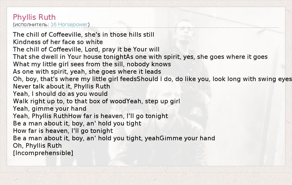 А как ты думаешь, о чем песня "Phyllis Ruth" ?