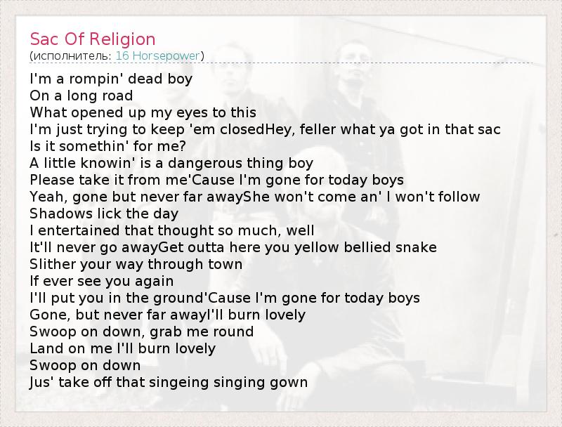 А как ты думаешь, о чем песня "Sac Of Religion" ?