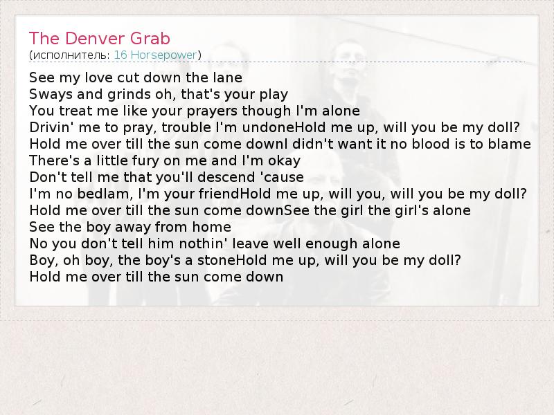 А как ты думаешь, о чем песня "The Denver Grab" ?