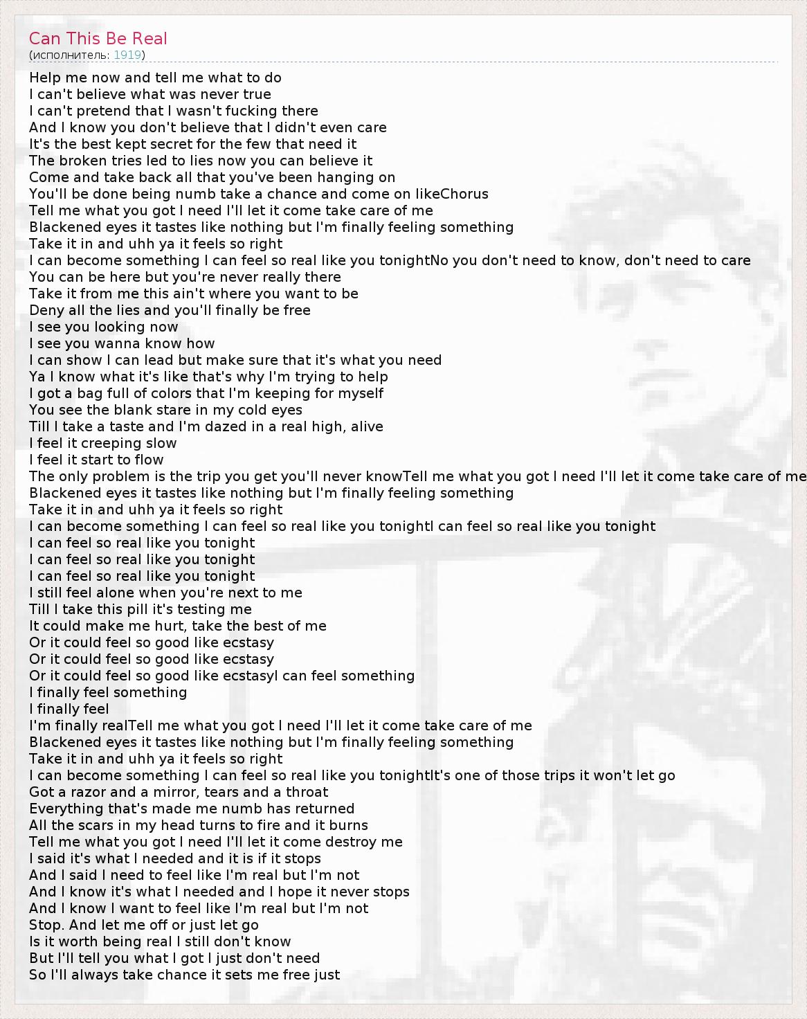 А как ты думаешь, о чем песня "Can This Be Real" ?