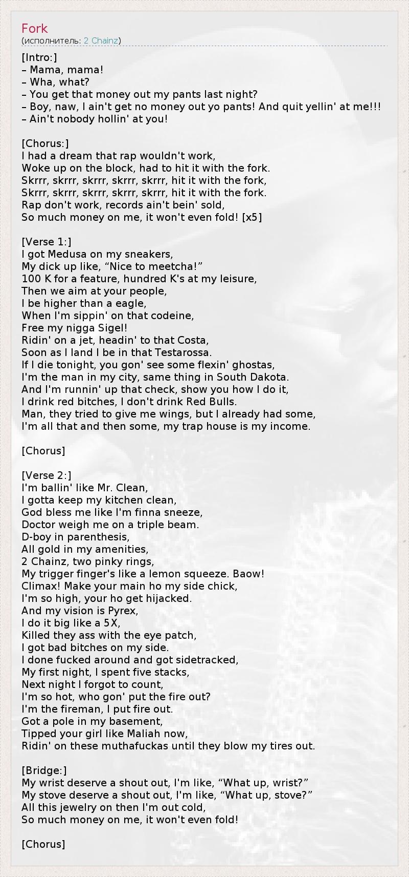 Skrrr, skrrr, skrrr, skrrr, skrrr, hit it with the fork,