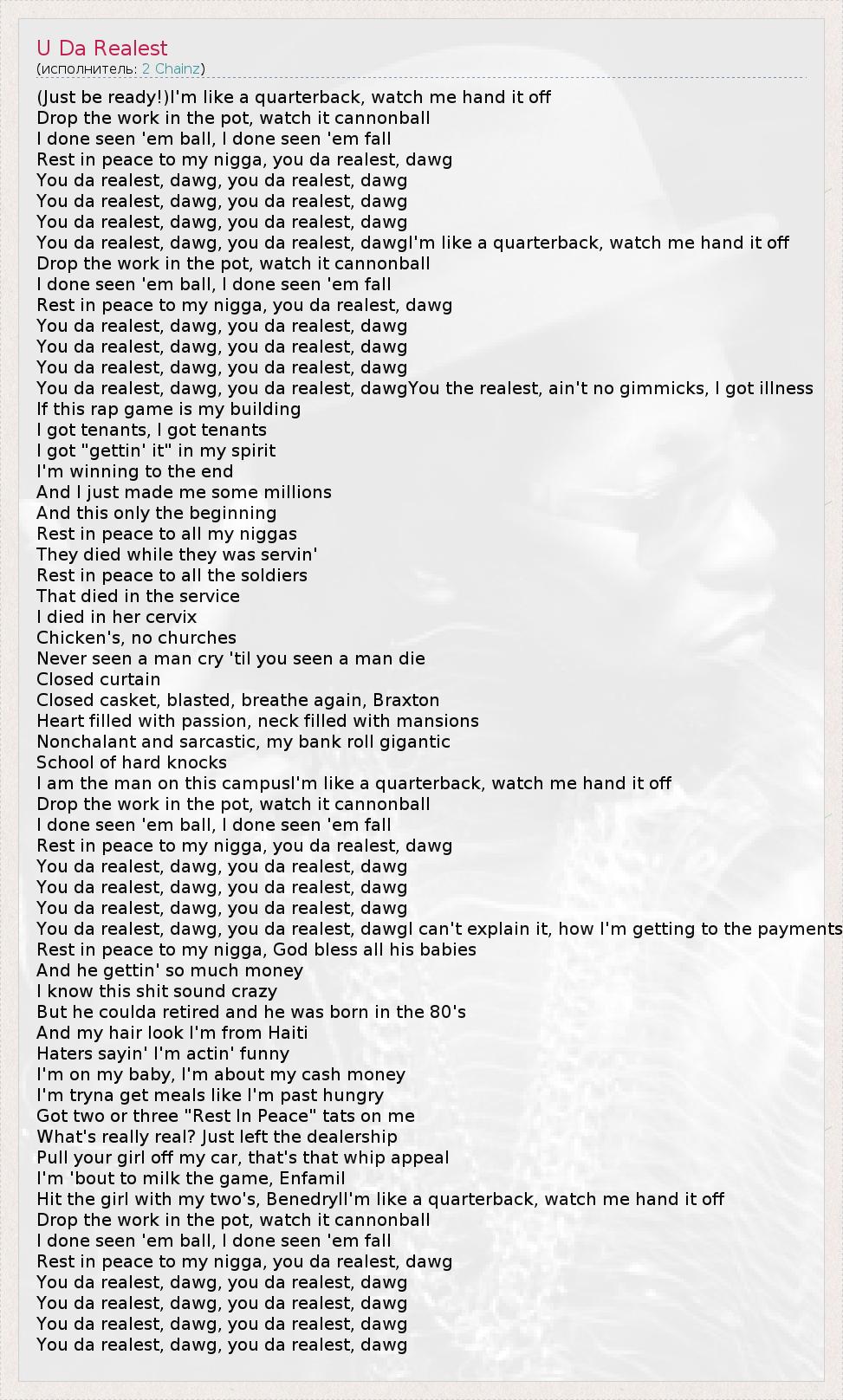 А как ты думаешь, о чем песня "U Da Realest" ?