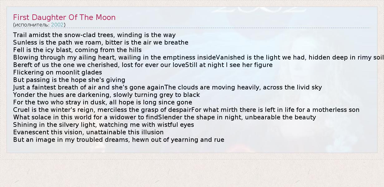 ГлавнаяИсполнители2002First Daughter Of The Moon