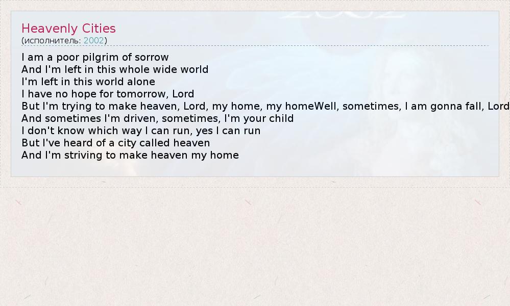 А как ты думаешь, о чем песня "Heavenly Cities" ?