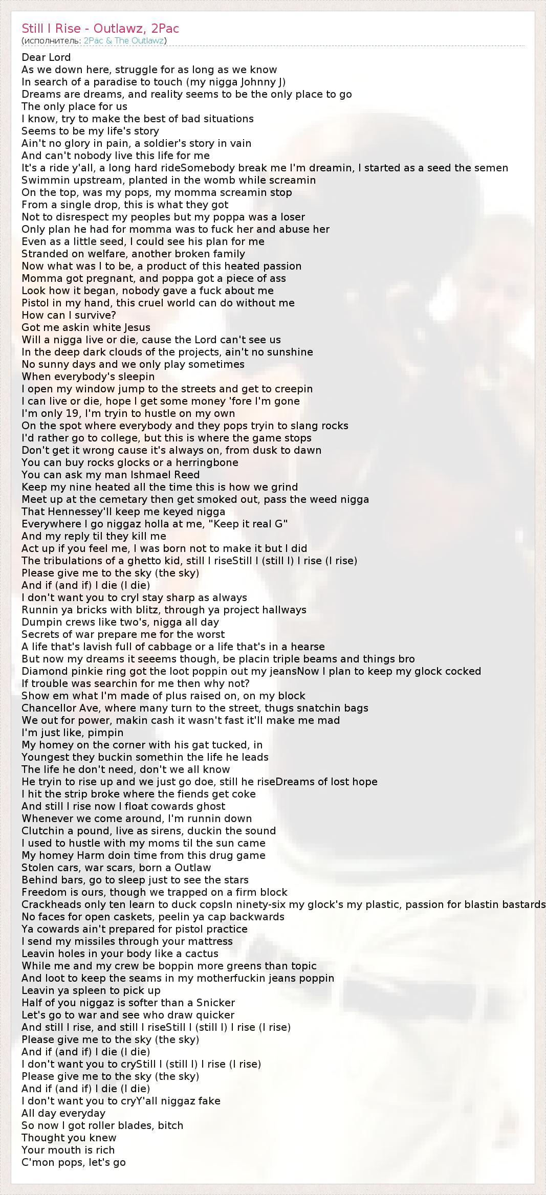 А как ты думаешь, о чем песня "Still I Rise - Outlawz, 2Pac" ?