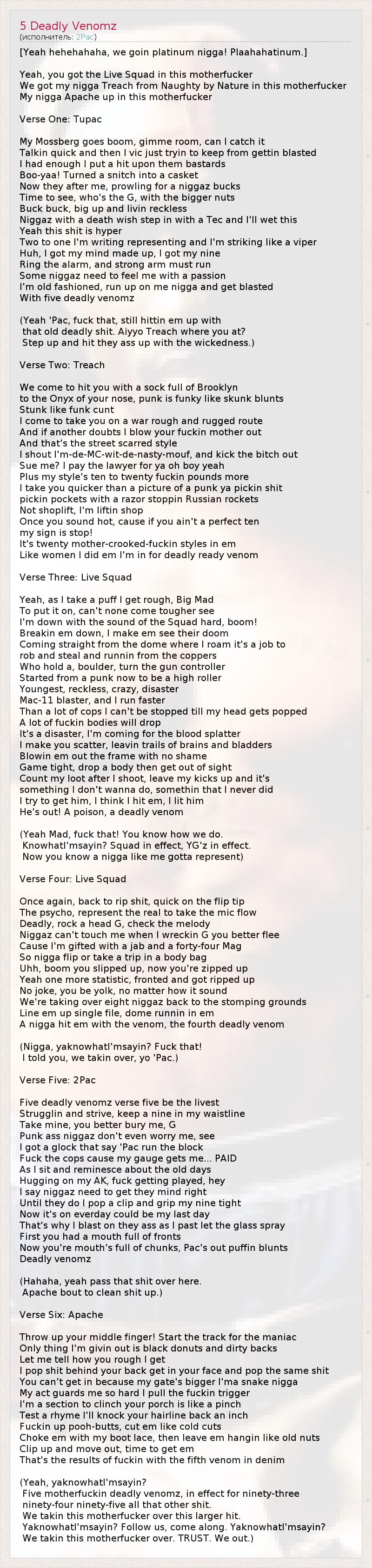 А как ты думаешь, о чем песня "5 Deadly Venomz" ?