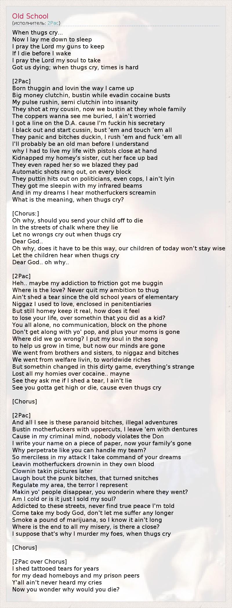Видишь, ты или под кайфом или мертв, потому что даже преступники плачут.