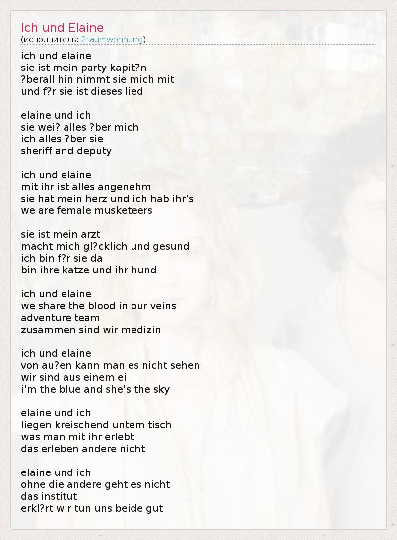 А как ты думаешь, о чем песня "Ich und Elaine" ?