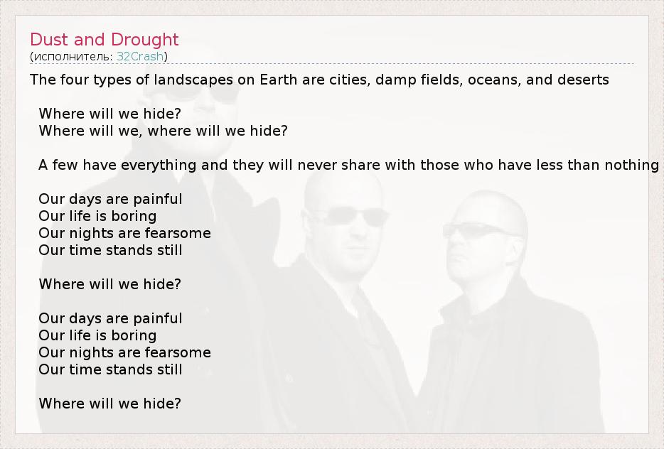 А как ты думаешь, о чем песня "Dust and Drought" ?