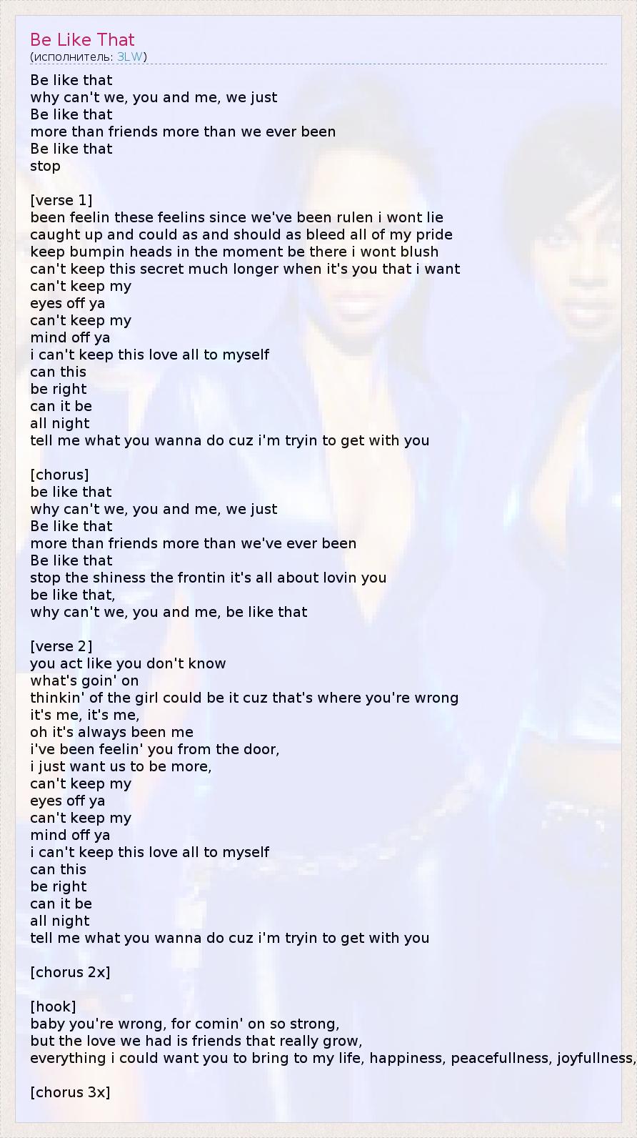 А как ты думаешь, о чем песня "Be Like That" ?