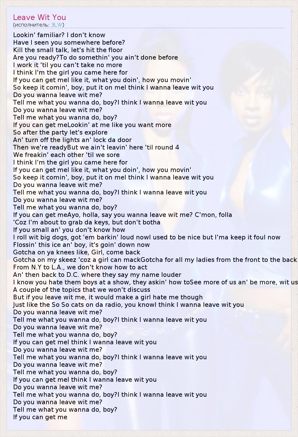 А как ты думаешь, о чем песня "Leave Wit You" ?