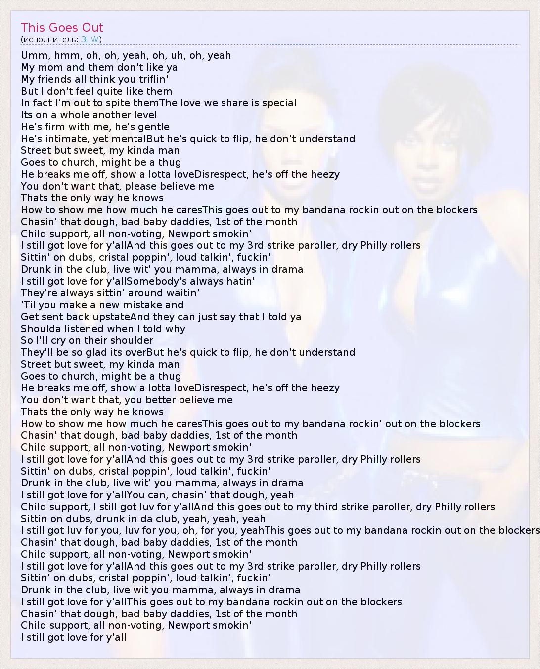 А как ты думаешь, о чем песня "This Goes Out" ?