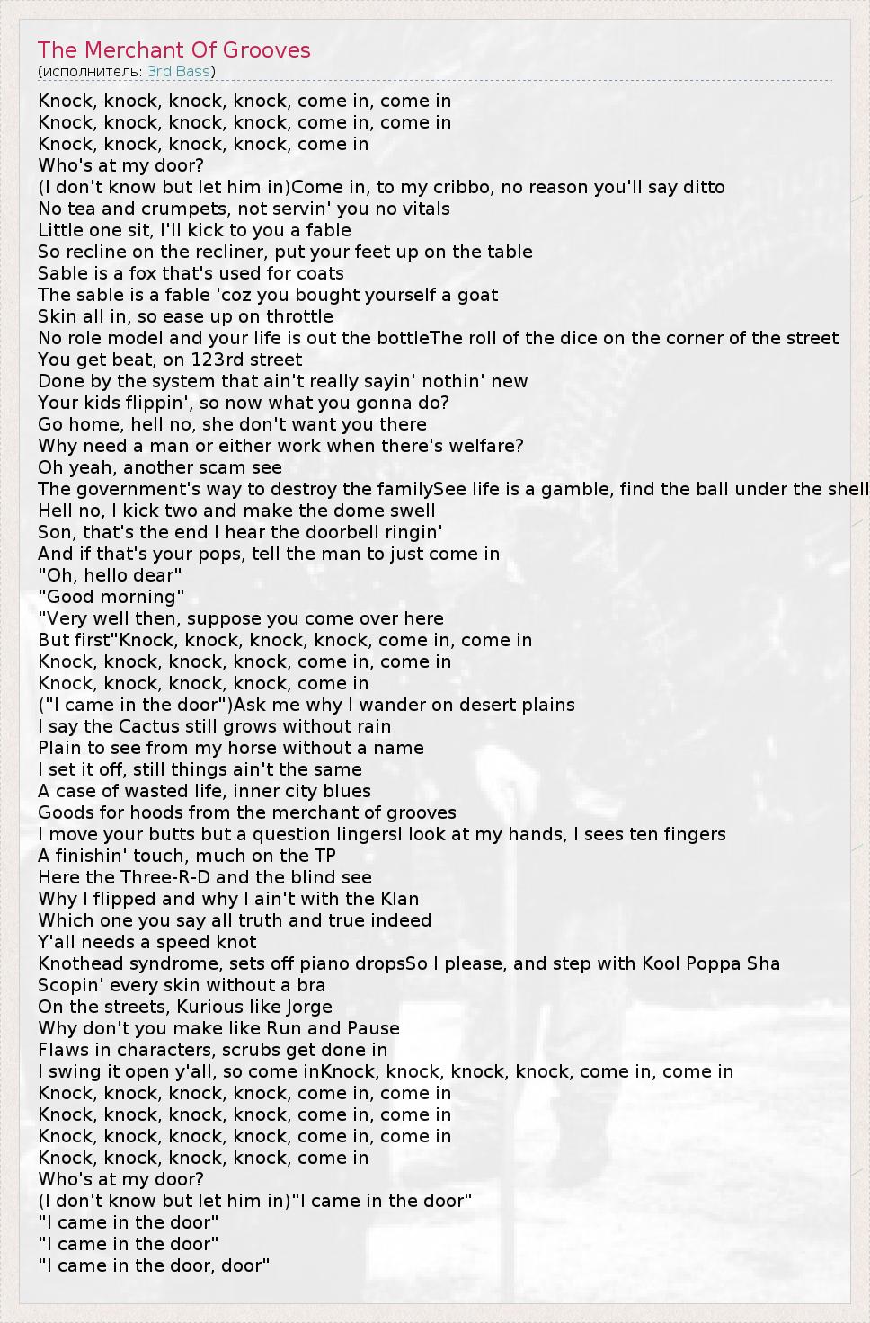 А как ты думаешь, о чем песня "The Merchant Of Grooves" ?