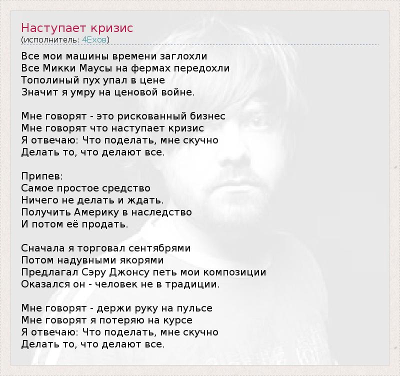 А как ты думаешь, о чем песня "Наступает кризис" ?