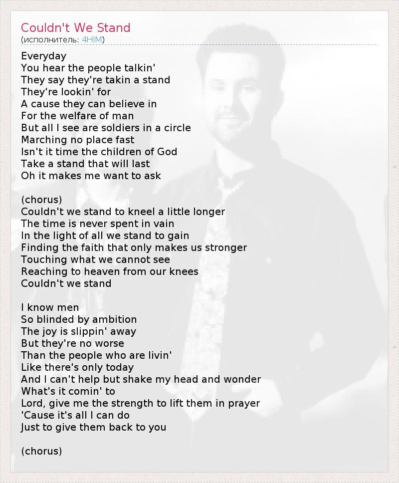 А как ты думаешь, о чем песня "Couldn't We Stand" ?