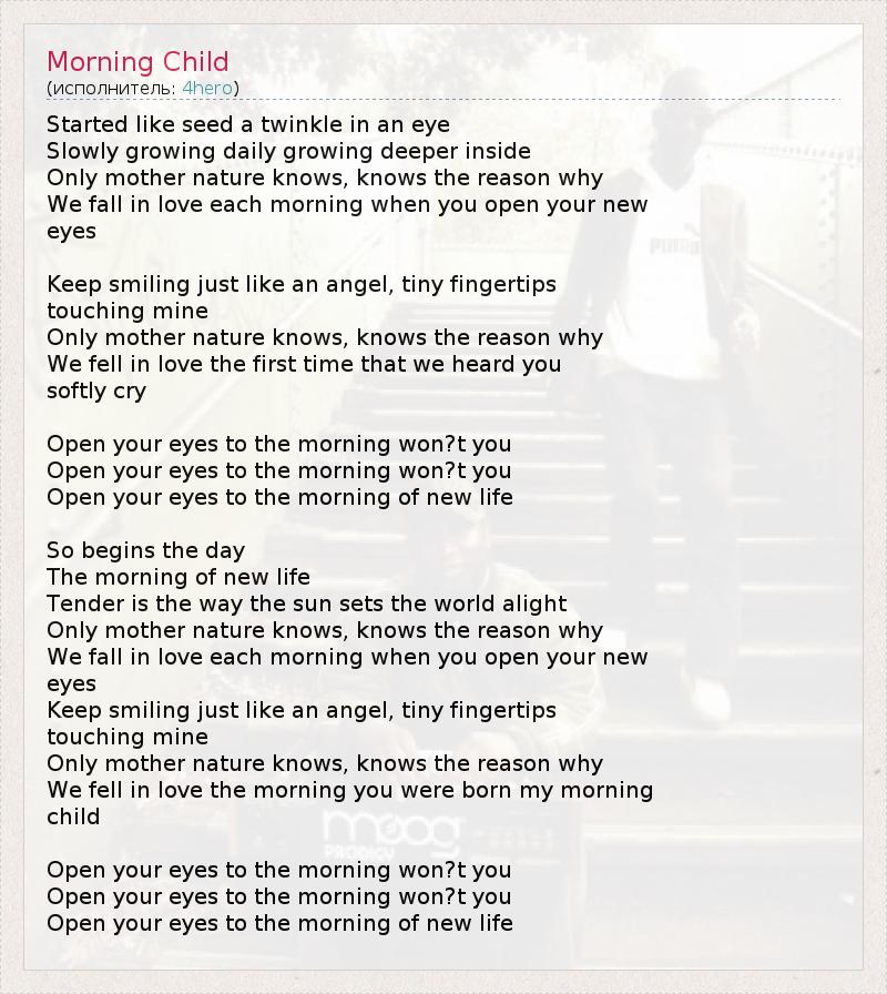 А как ты думаешь, о чем песня "Morning Child" ?