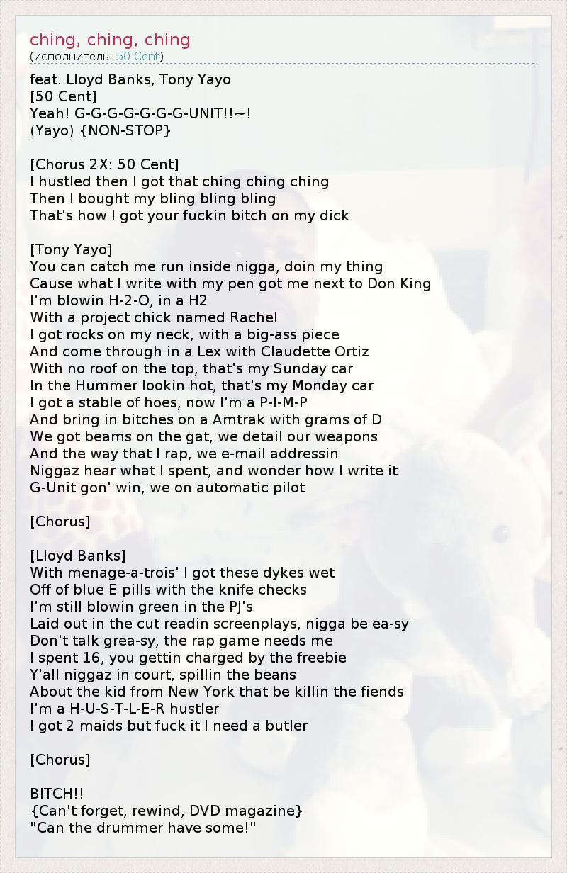 А как ты думаешь, о чем песня "ching, ching, ching" ?