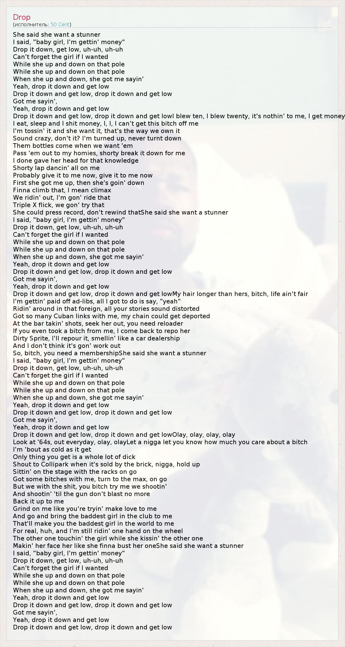 Drop it down and get low, drop it down and get lowI blew ten, I blew twenty, it's nothin' to me, I get money