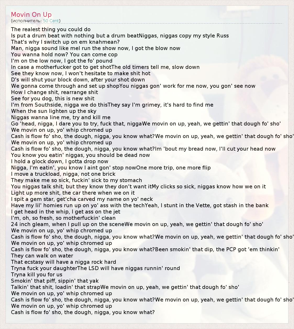 А как ты думаешь, о чем песня "Movin On Up" ?