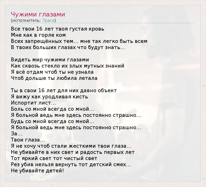 А как ты думаешь, о чем песня "Чужими глазами" ?