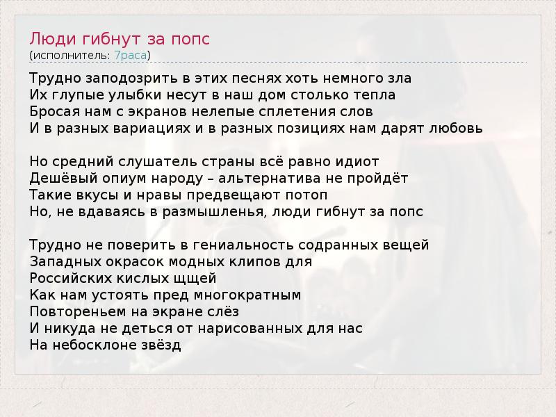 Но, не вдаваясь в размышленья, люди гибнут за попс