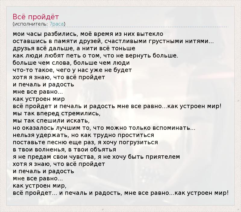 всё пройдет и печаль и радость мне все равно...как устроен мир!