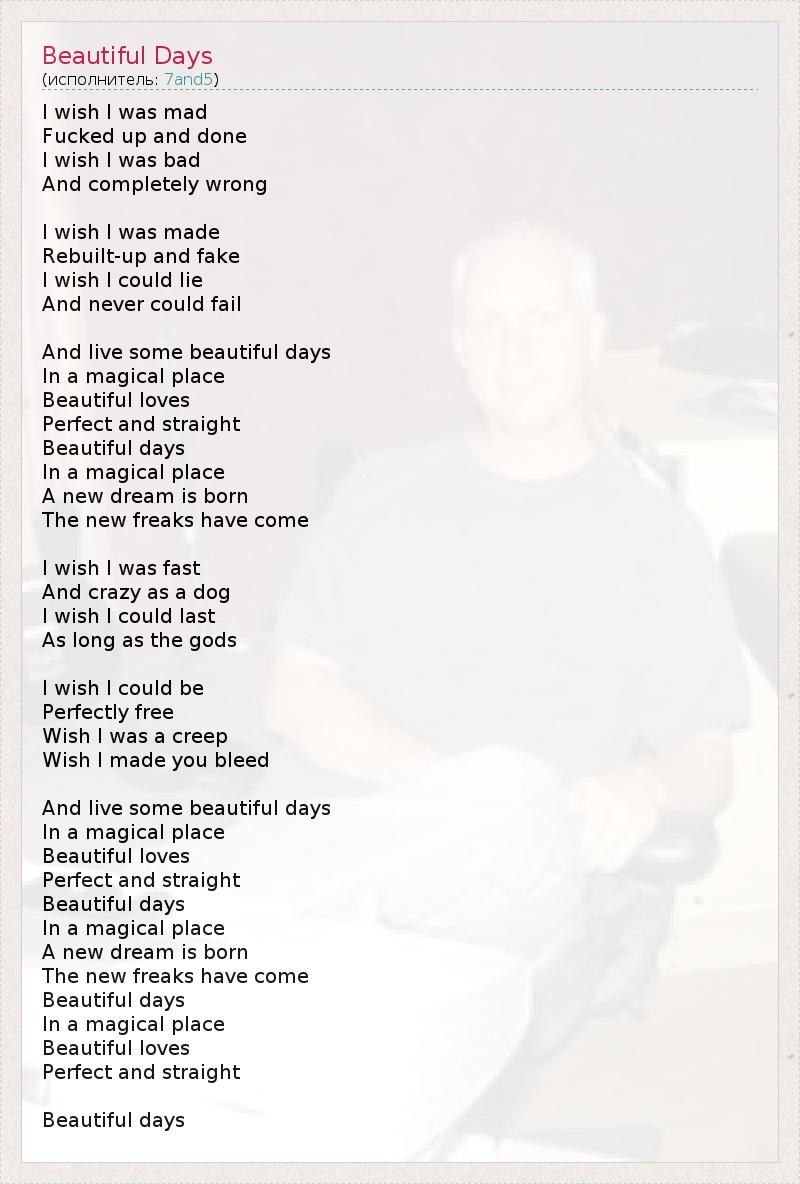 А как ты думаешь, о чем песня "Beautiful Days" ?